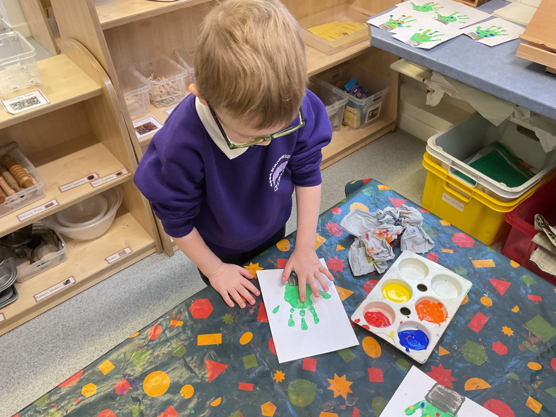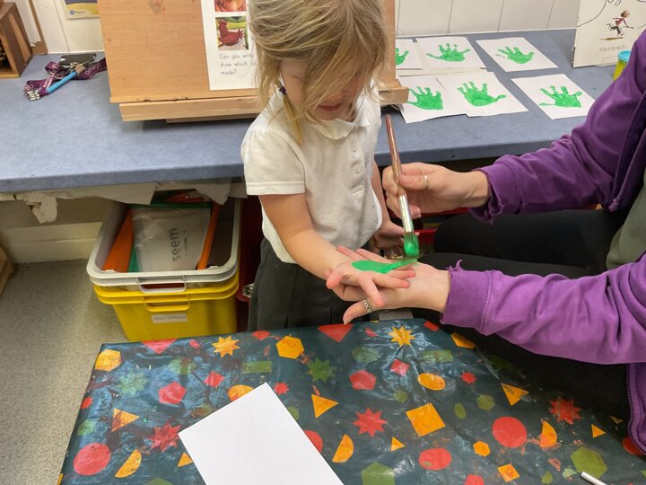 This week Reception have been busy printing with their hands and fingers to create festive Christmas tree pictures. The children enjoyed exploring different colours and textures, and each print is unique.
