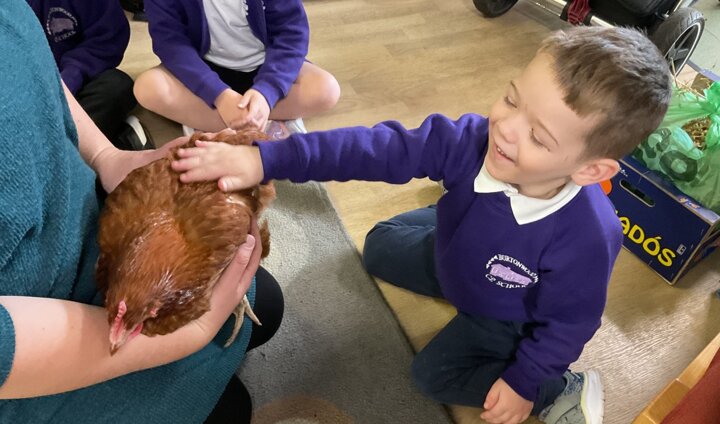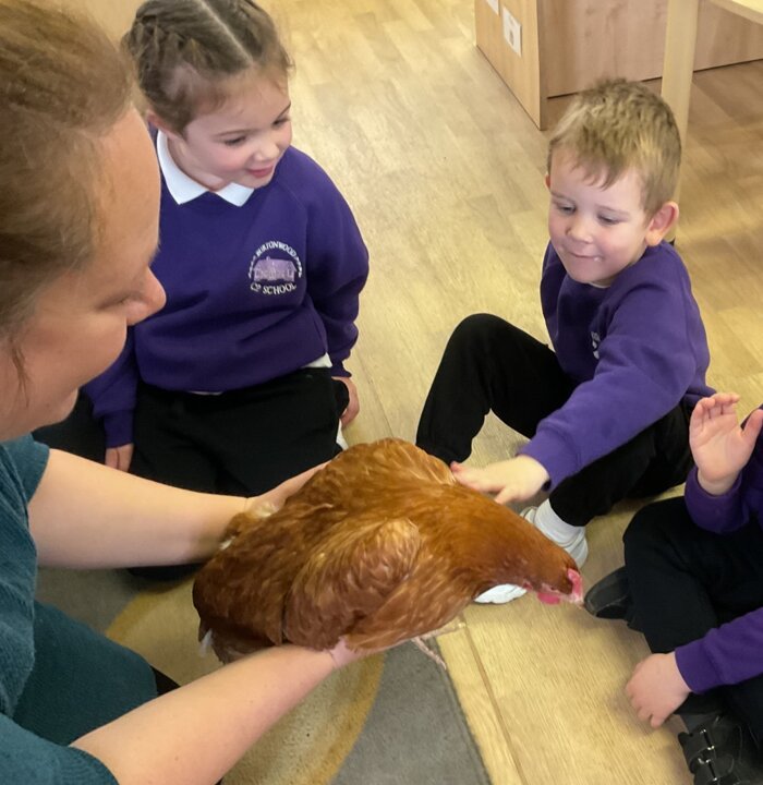 Reception have been enjoying the story of The Little Red Hen, and to make their learning even more exciting, one of our families kindly brought two real hens into the classroom for them to meet.