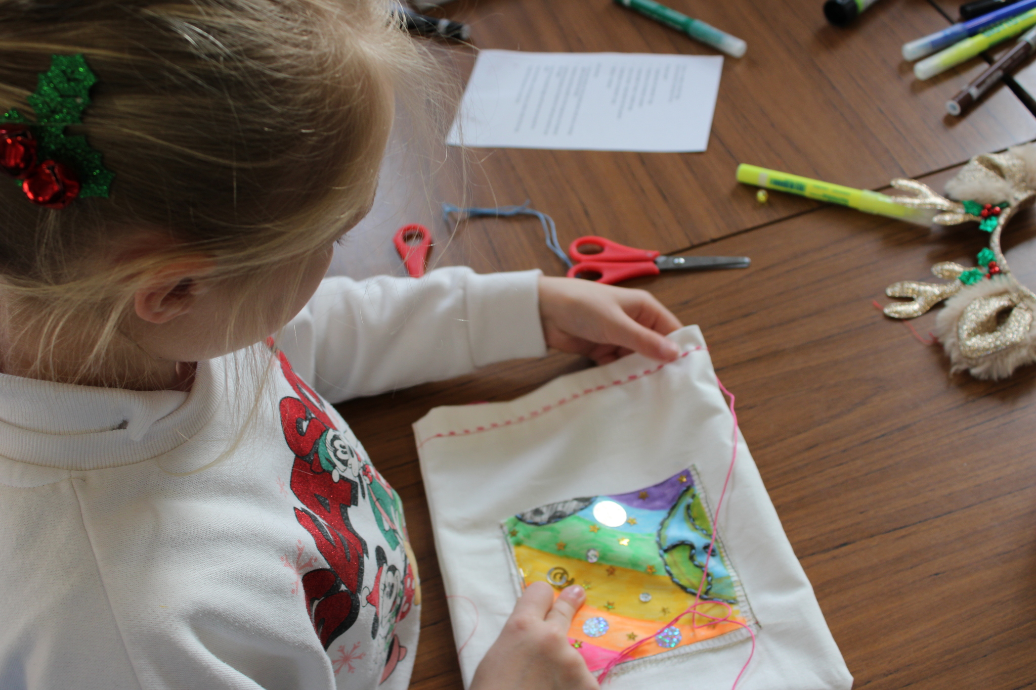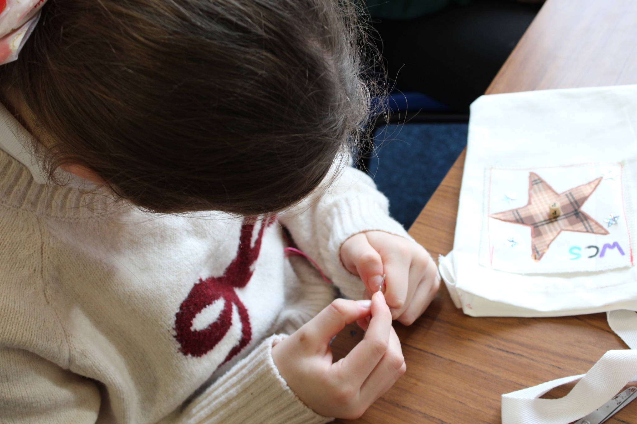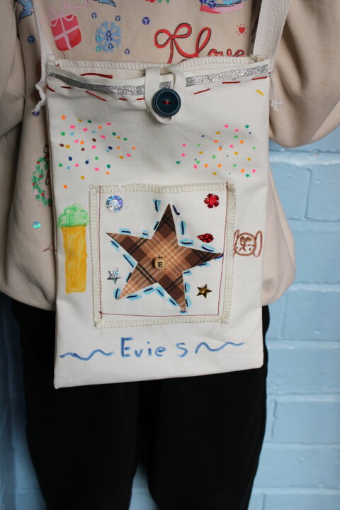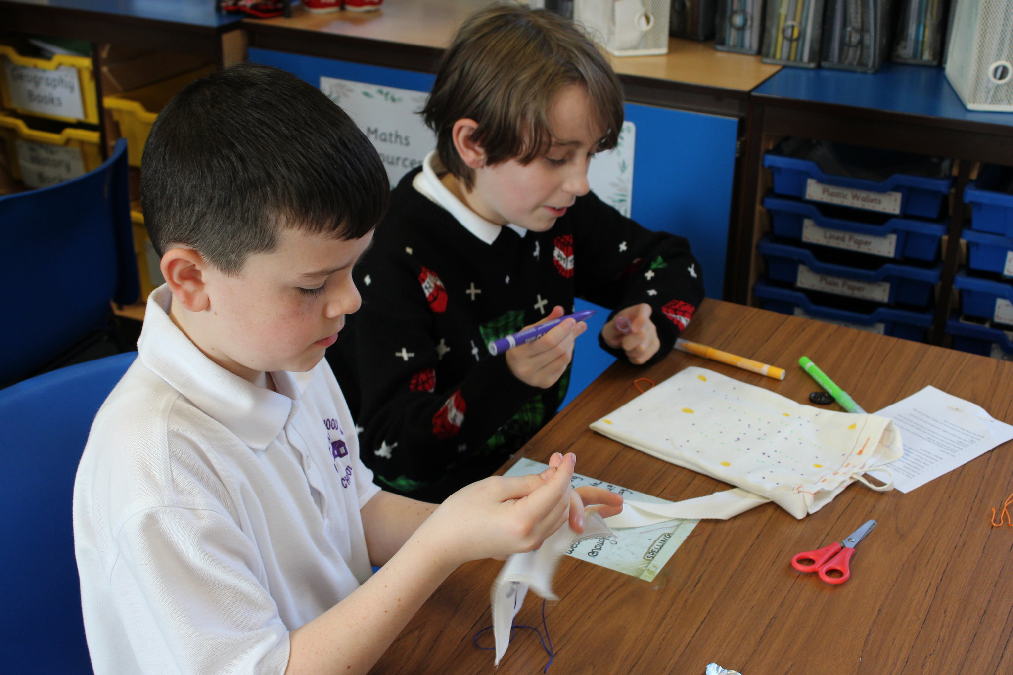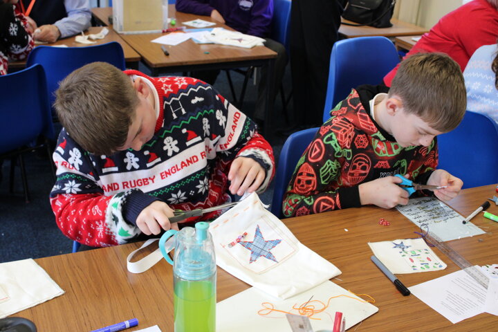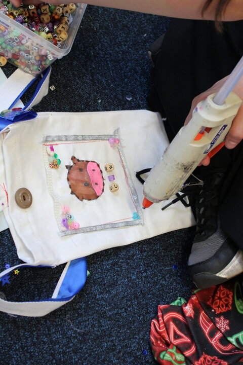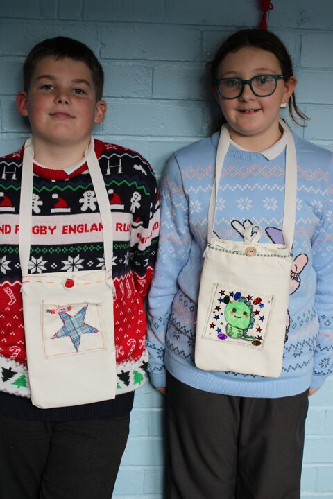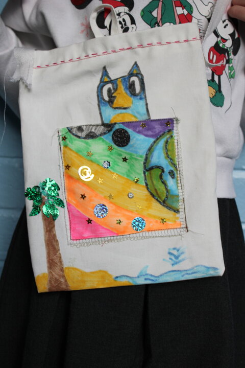 Working closely with the children, the volunteers supported pupils as they designed and made their own fabric bags. Year 6 pupils were given a fabric patch, which they sketched on, decorated, and then stitched. With help from the Burtonwood Sewing Group, the children used both hand-sewing techniques and sewing machines to attach their personalised patch onto their bag, making each one unique.