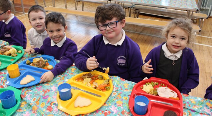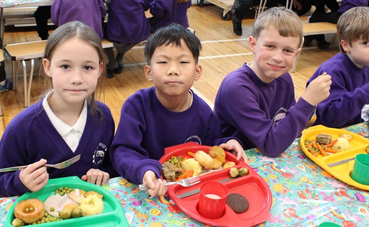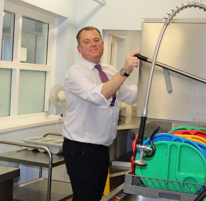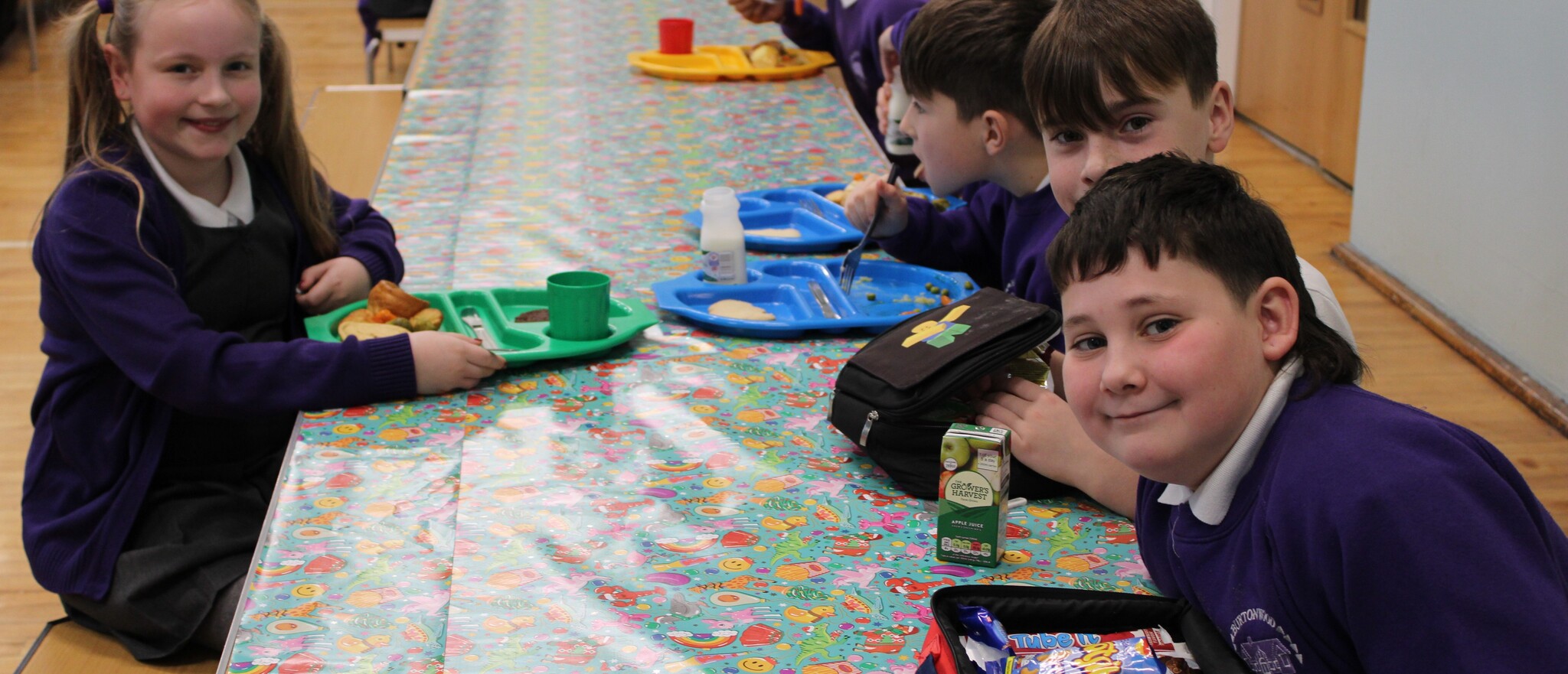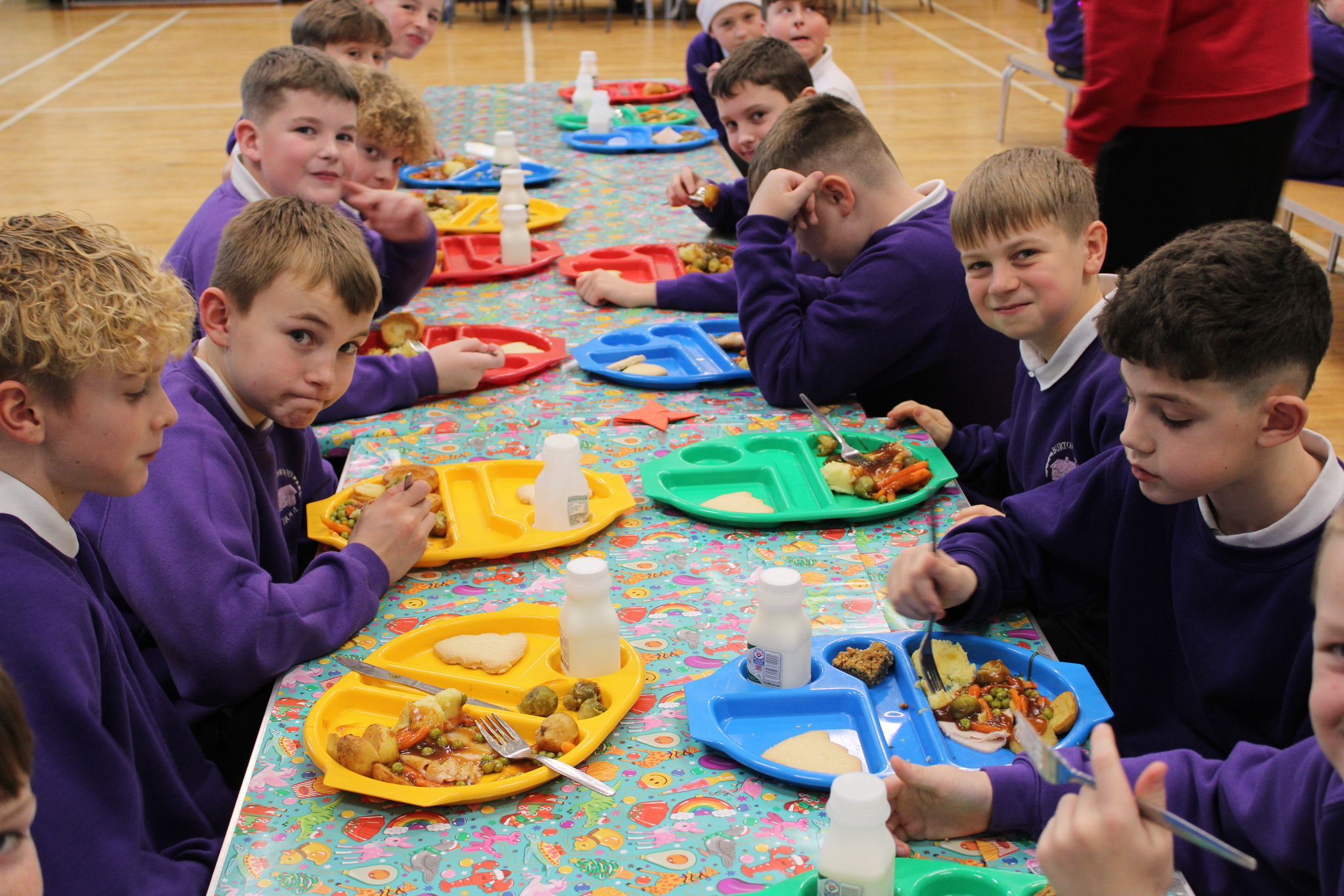 To ensure the children were well supported and able to relax, staff and midday assistants joined them on a rota basis throughout lunchtime. Even Mr Heatley got stuck in and helped with the washing up after enjoying his dinner!