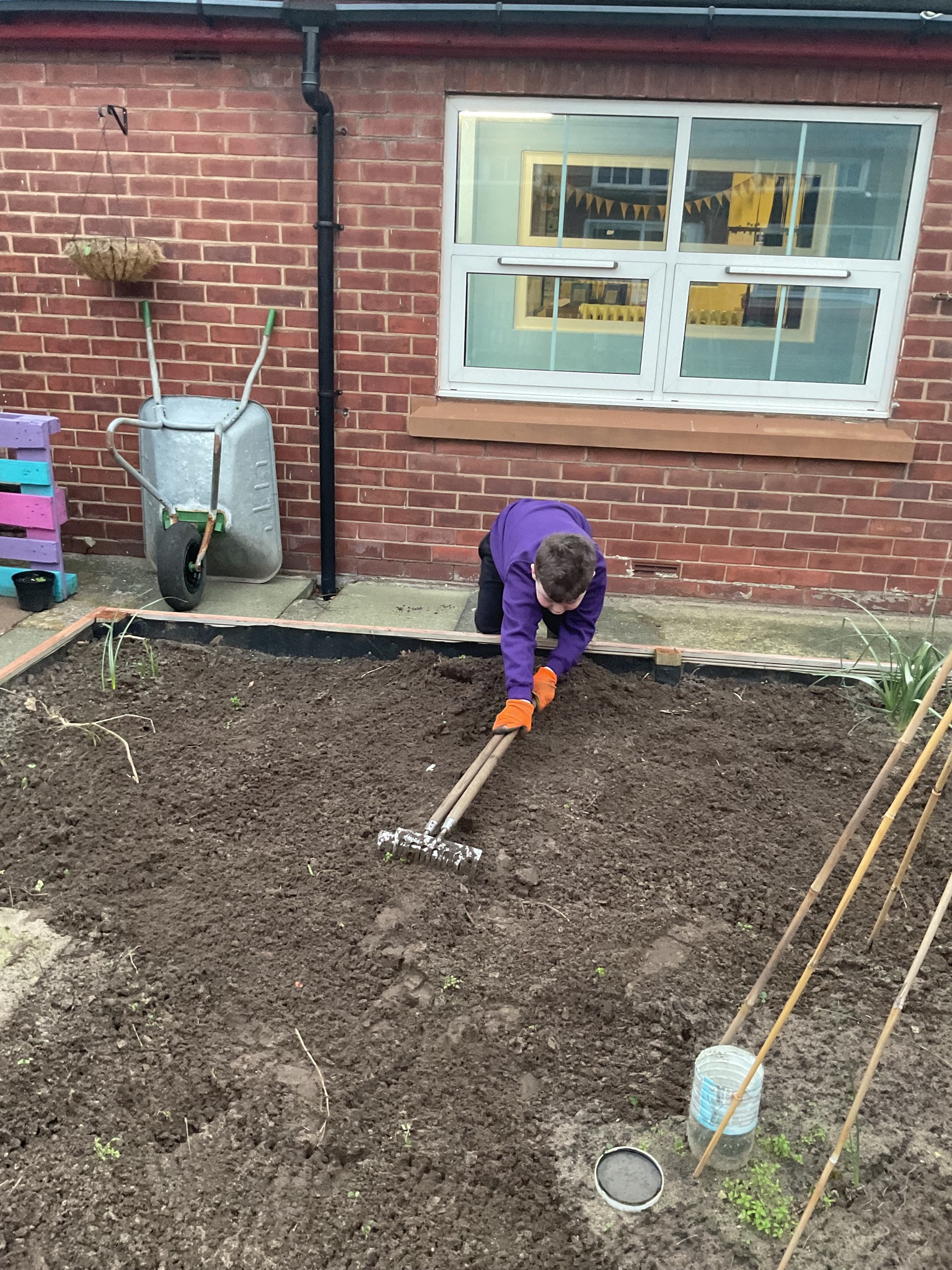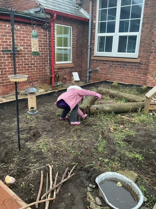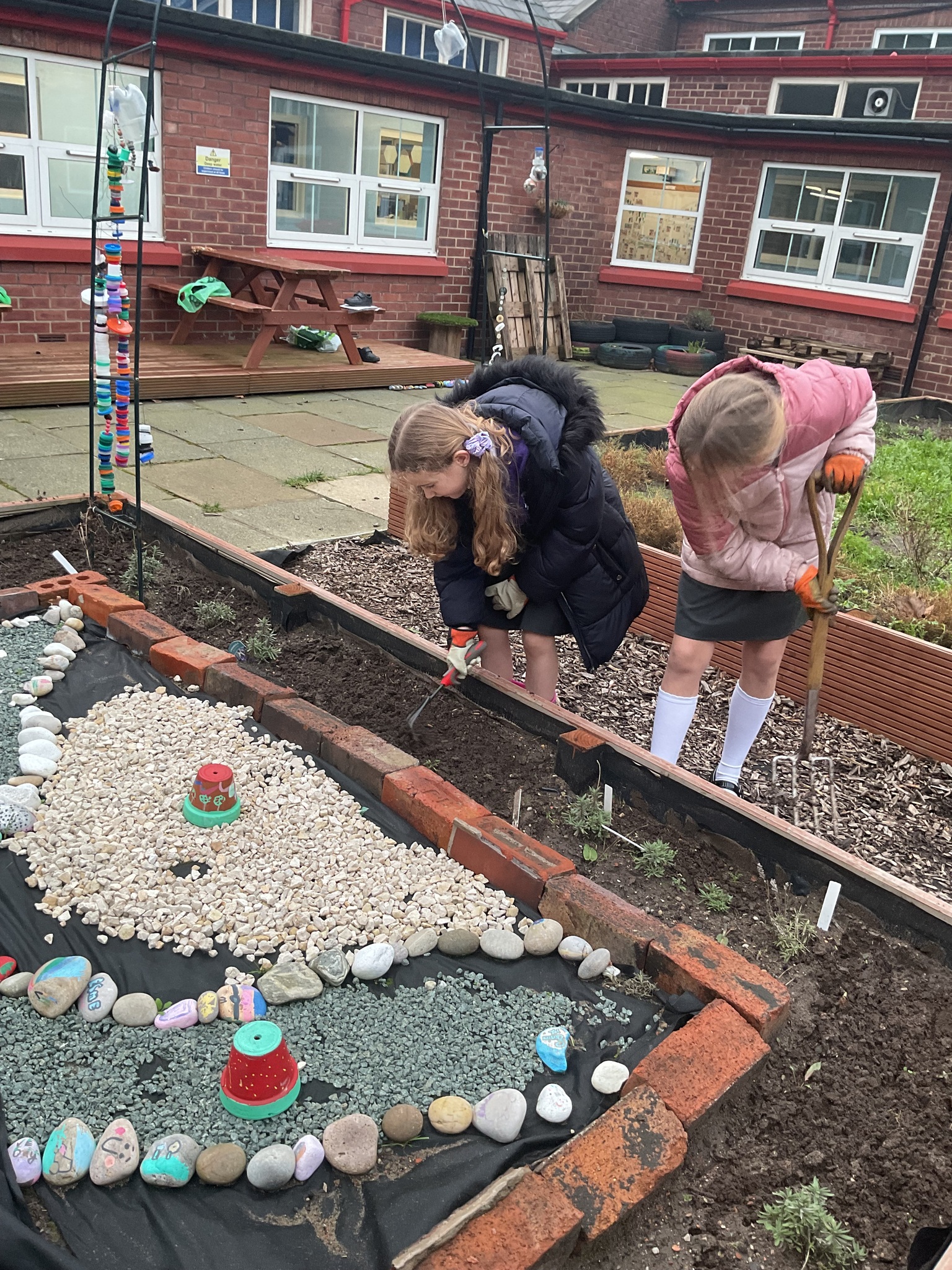 Work has also begun on preparing the ground for the wild garden. This involved plenty of digging and weeding, and the children approached the task with enthusiasm and determination.