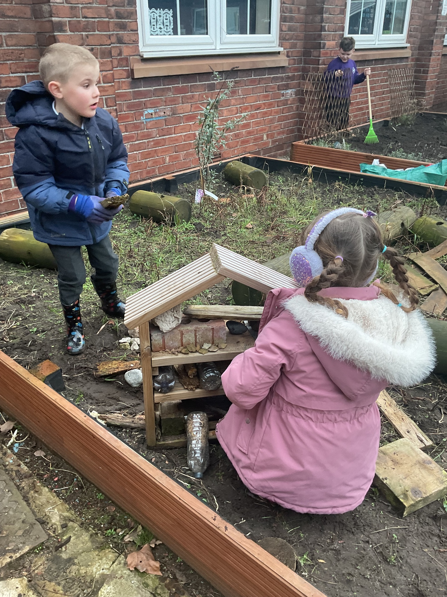 The bug hotels were rebuilt, ready to welcome new creepy crawlies and provide safe habitats for insects that are so important to our environment. The children showed great care and attention while rebuilding them.