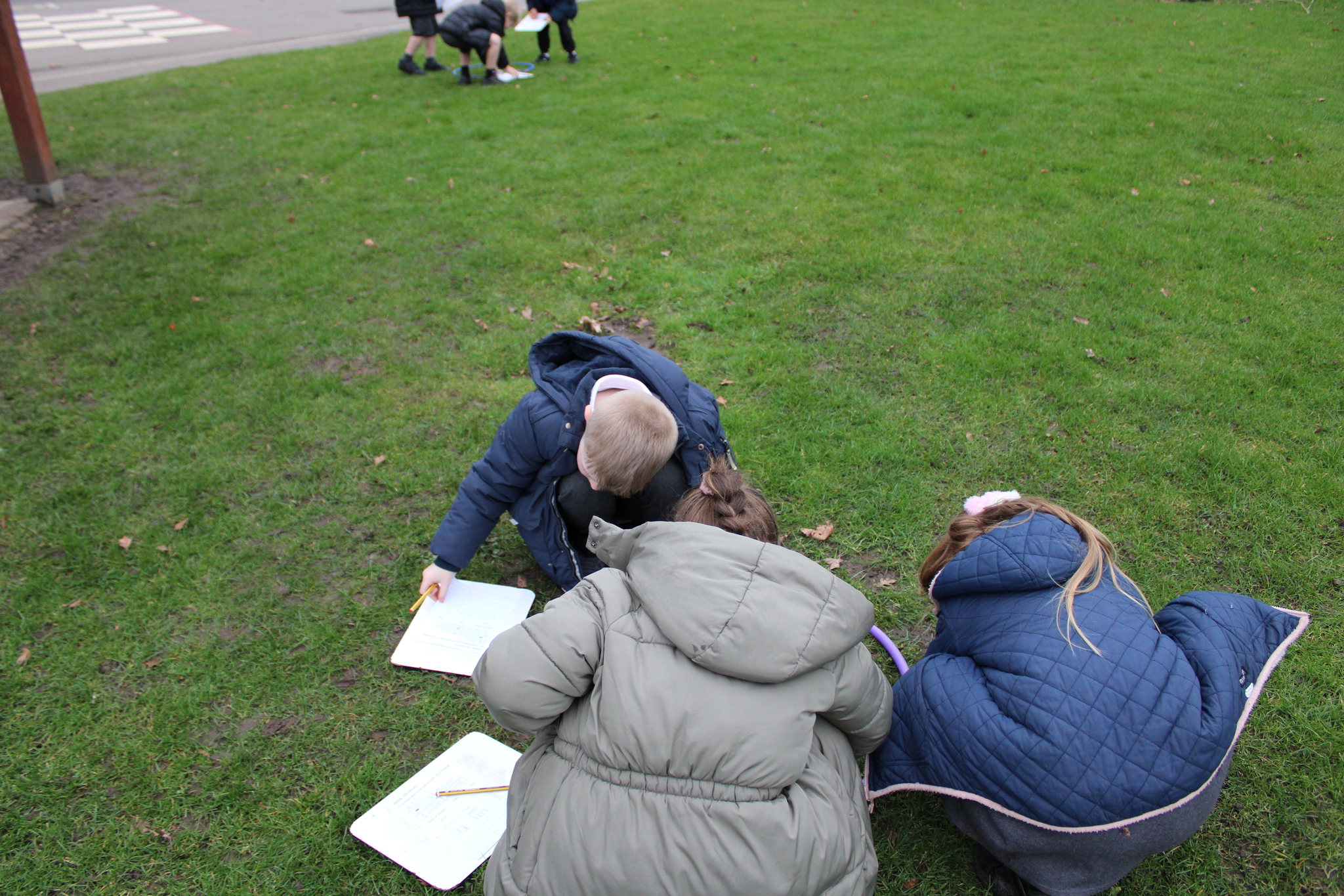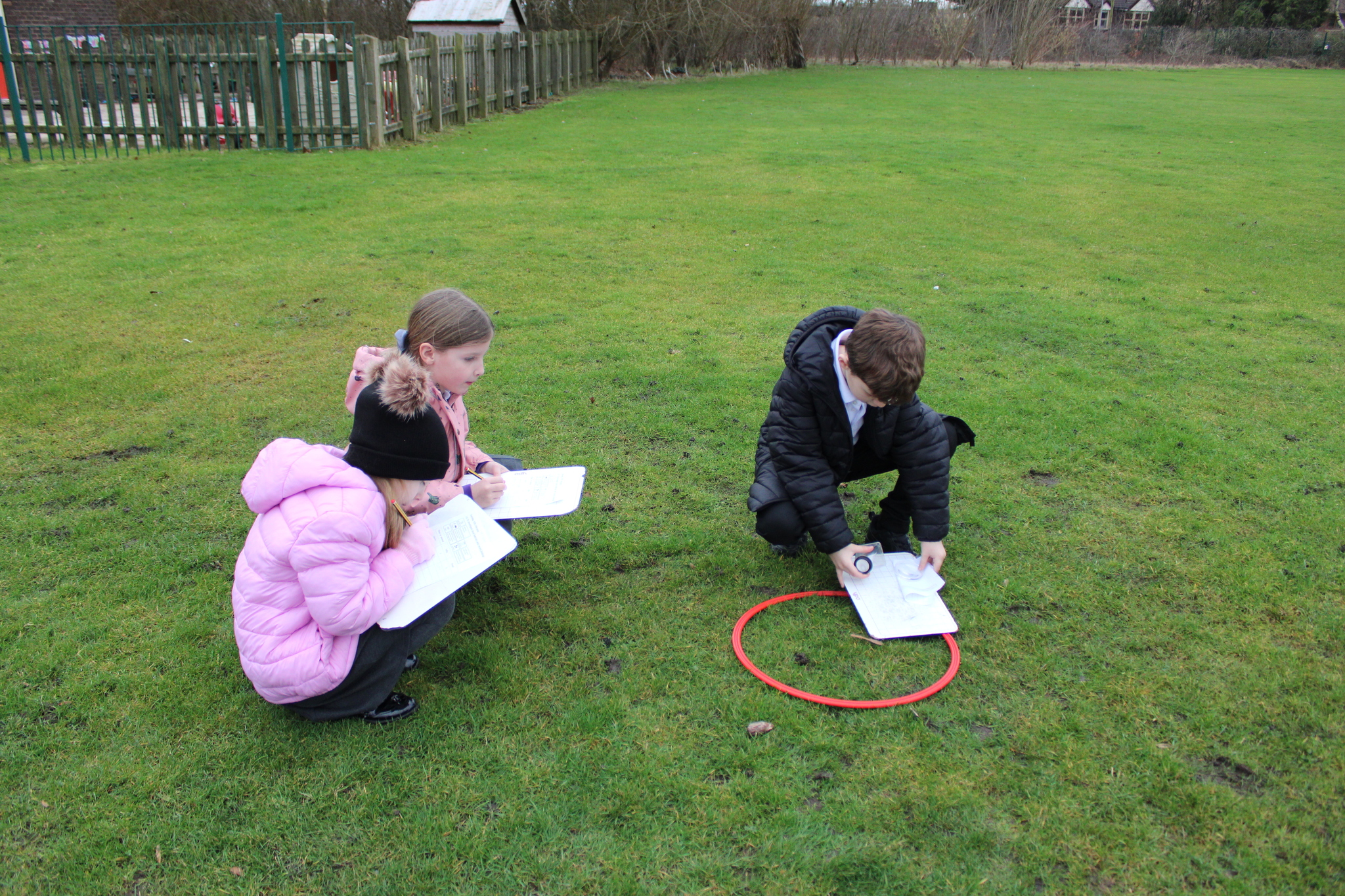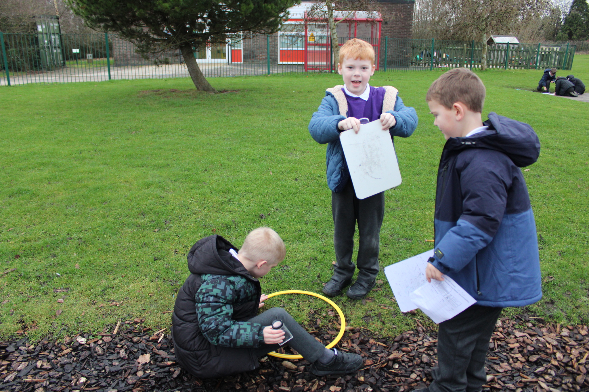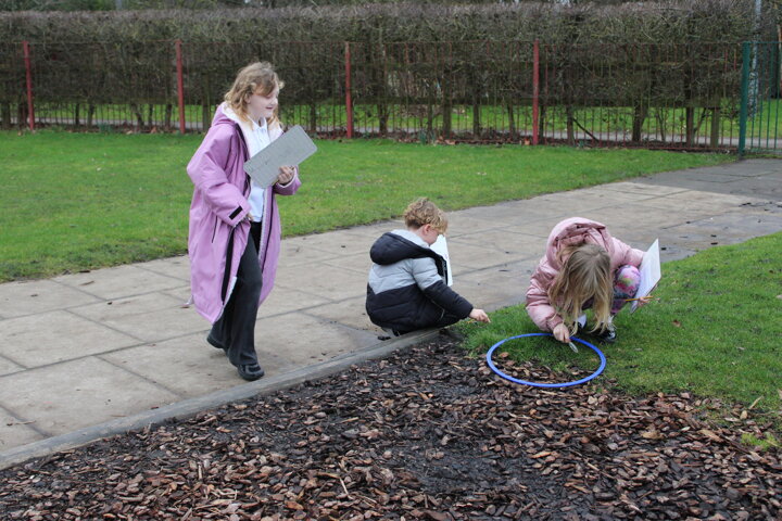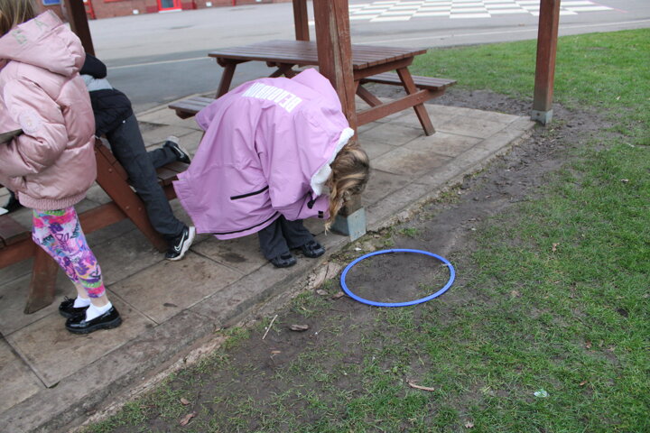 Using hoops to mark out small areas, the children looked closely at everything inside their circle. This activity helped them carry out simple data collection, identifying the plants and animals living in each habitat. They were excited to discover tiny insects, different types of plants, and signs of how living things use each space.