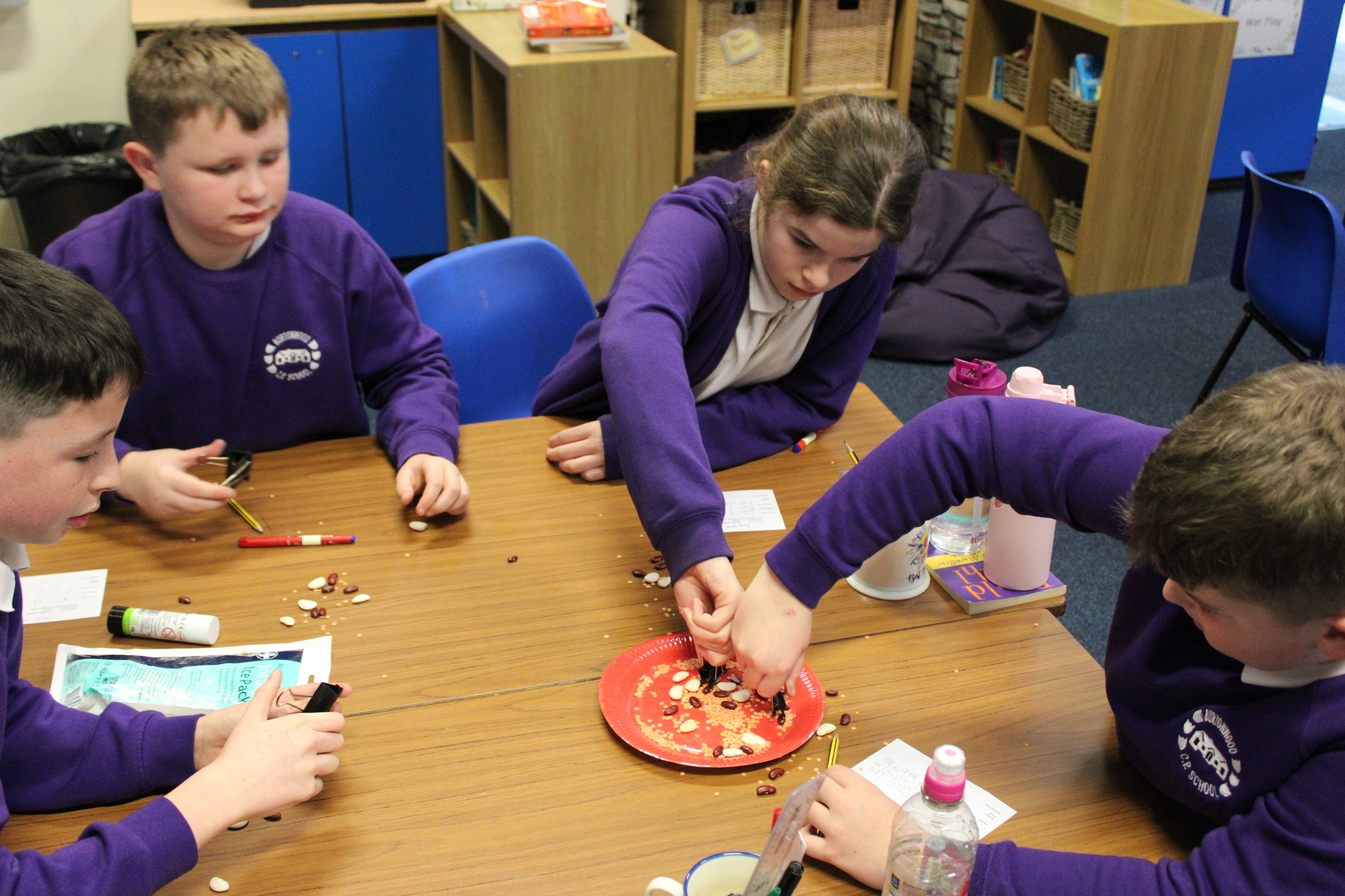 In class, pupils took part in an investigation using different sized tools to represent various beak shapes, along with different sizes of seeds. They discovered that some beak types were more effective for certain seeds than others. This helped them understand that: