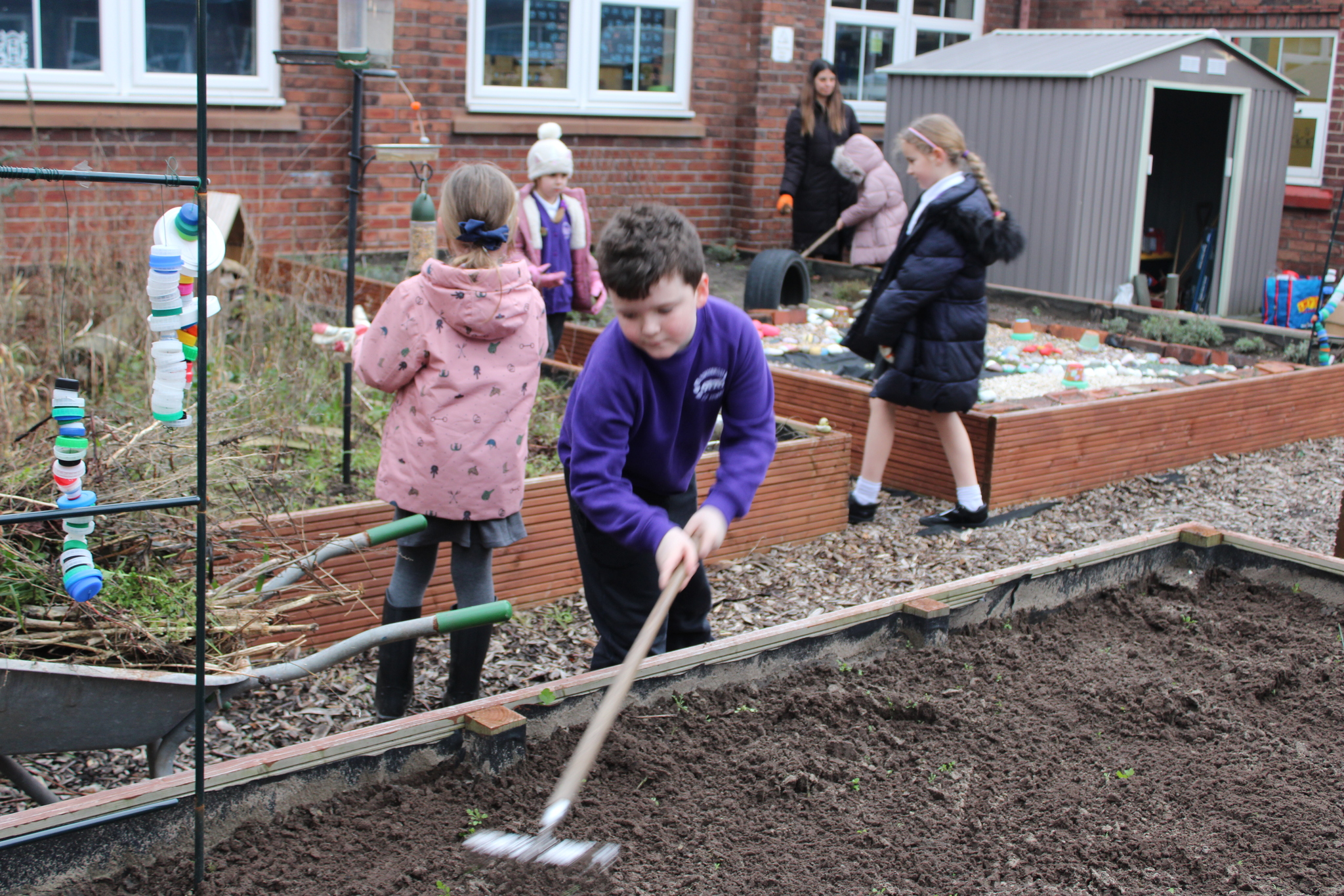 The Eco Gardeners have rolled up their sleeves. Despite the winter chill, the children have been out in the garden preparing soil, weeding beds and getting everything ready for the planting season. Their teamwork and enthusiasm have already made a big difference.