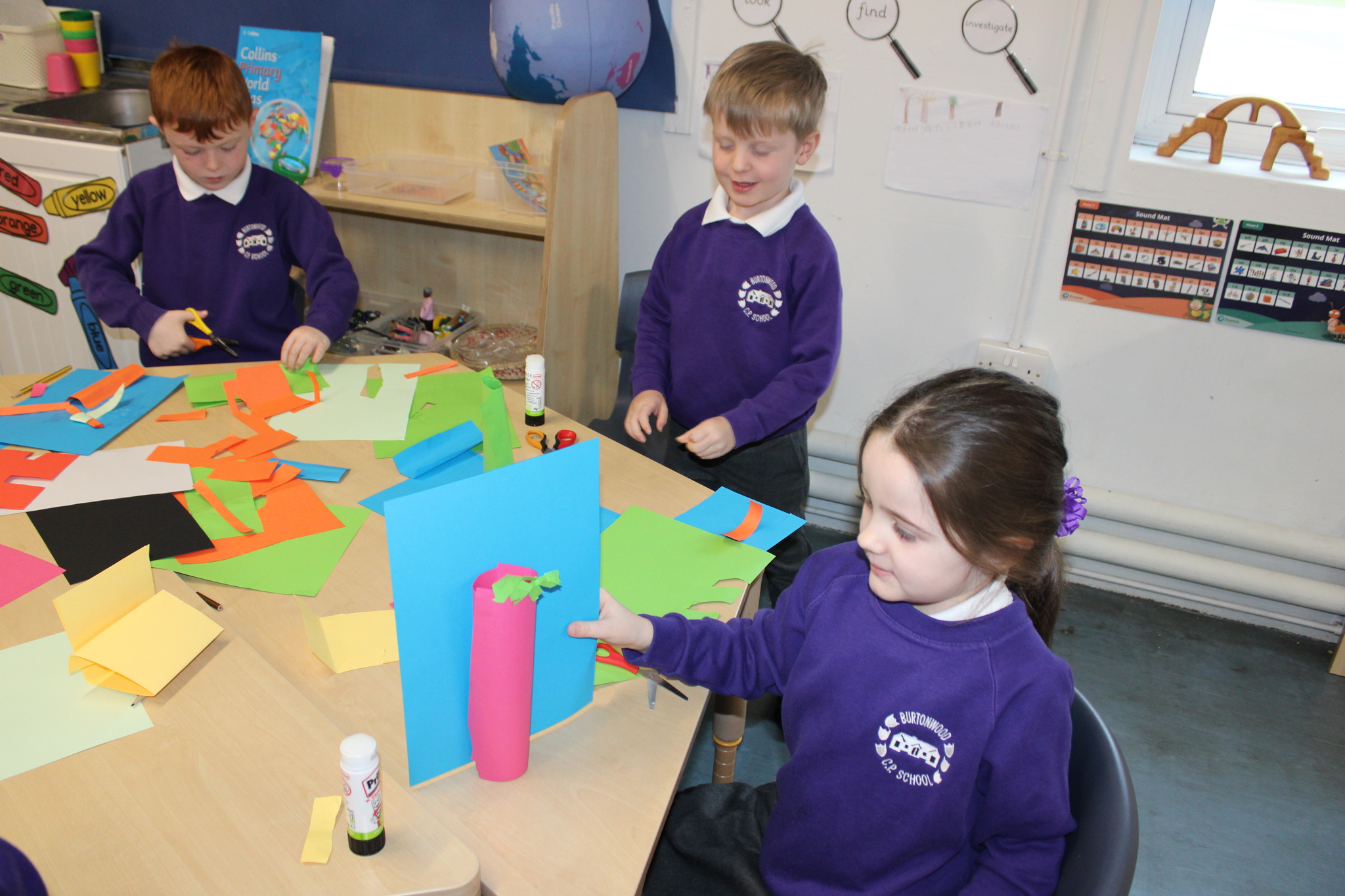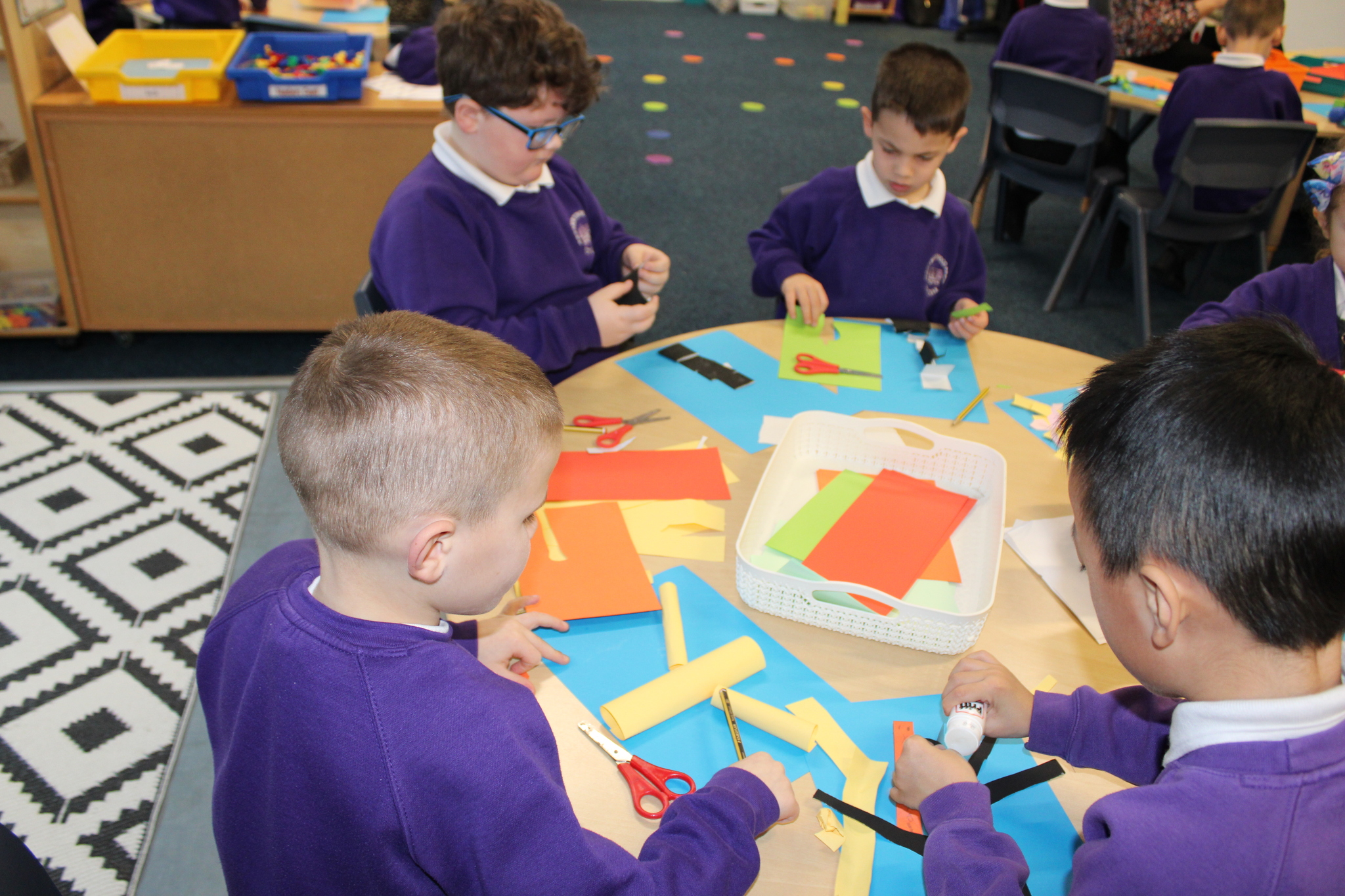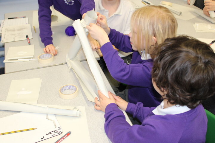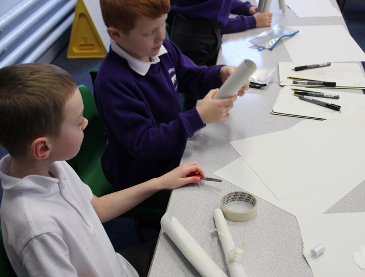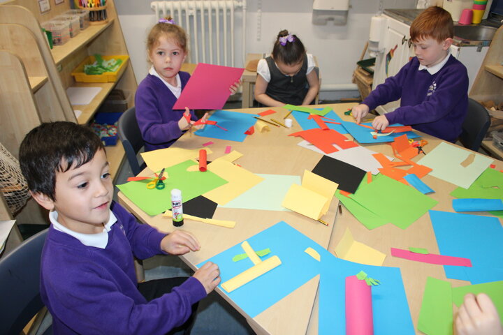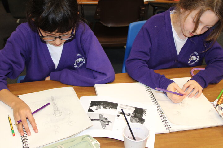 Year 3 pupils worked on constructing 3D aeroplanes for the PAN display. Using a range of resources, children explored structure and balance while thinking about proportion and detail.